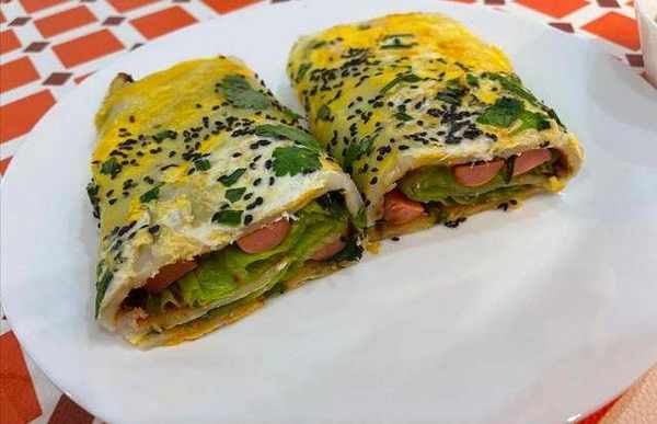 煎餅果子是中國天津的著名小吃,天津人以它為早點。煎餅餜子由綠豆面薄餅、雞蛋、還有餜子(油條)或餜篦(薄脆)組成,配以面醬、蔥末、腐乳、辣椒醬,可選作為佐料。