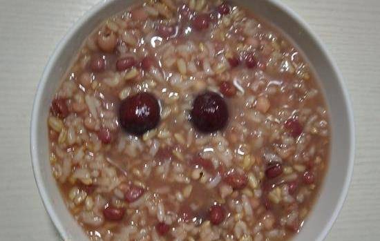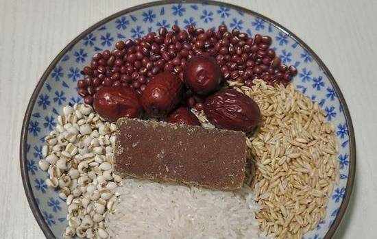 食材:燕麥米100克,薏米50克,大米50克,紅豆50克,紅棗5顆,紅糖一塊