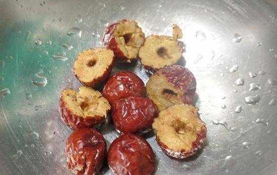 第二步:紅棗用溫水泡一下,再用手搓洗紅棗的外皮,然後用小刀從中間切開一圈,再扭轉一下,一半出來的是不帶核,有一半是帶核的,隻需把那棗核取出。