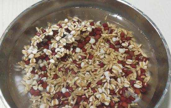 第一步:分別將燕麥米,薏米還有紅豆提前浸泡2個小時以上,如果有時間,最好是前一天晚上泡好,這樣煲粥時,這些豆更容易軟爛,最後盛出備用。