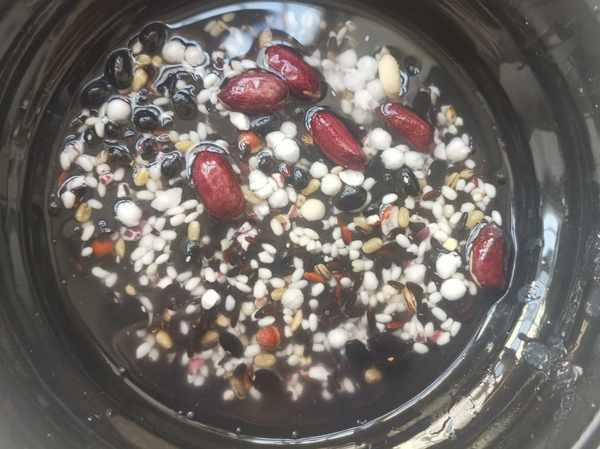第一步:把所有資料都準備妥當,如果沒有這麼多種類,其實買現成搭配好的食材來熬粥更是不錯的選擇。黑豆是很不錯的一種豆類,黑豆富含B族維他命及維他命E,是養顏美容所需的營養成分。黑豆還含有豐富的泛酸,有烏髮的功效。而黑豆中的維他命E能够成為體內防止氧化的保護層,黑豆種皮釋放的紅色花青素,可清除體內自由基,抗氧化活性更好,增强活力老年人要多吃。