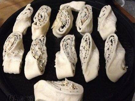 9.將花卷坯稍作整理,放入電餅鐺中煎制。