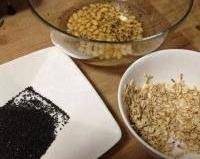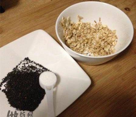 3.燕麥片用水洗一下,備好黑芝麻和鹽。