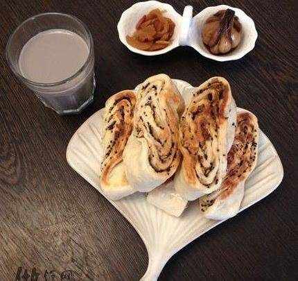 15.燕麥芝麻花卷加上燕麥芝麻豆漿,營養豐富,清淡爽口。