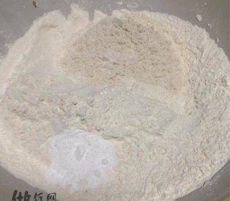 1.面粉,全麥粉,泡打粉混合,用60°左右的熱水和面。