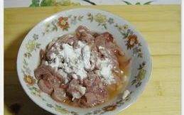 2、把肉先切成片,再切絲,最後切成小顆粒。放入碗中,加入1/4茶匙(1克)鹽,攪勻後醃制20分鐘。