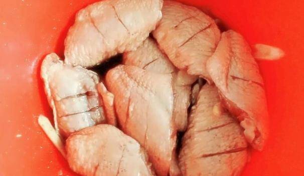 其實可樂雞翅最關鍵的步驟也就是煎雞翅瞭,我們把買回來的雞翅清洗幹凈之後,然後新鮮的雞翅也是不用焯水的,需要用料酒揉搓均勻就可以瞭,另外在機器上面改一下,發到這樣的話,雞翅就可以更好的入味,拿著小刀,隨便在雞翅的正反兩面劃幾刀就可以瞭,醃制的時候如果想要雞翅的腥味去除得更幹凈就需要添加一些啤酒和生薑那麼放在冰箱裡面醃制的話就會更快的入味兒瞭。