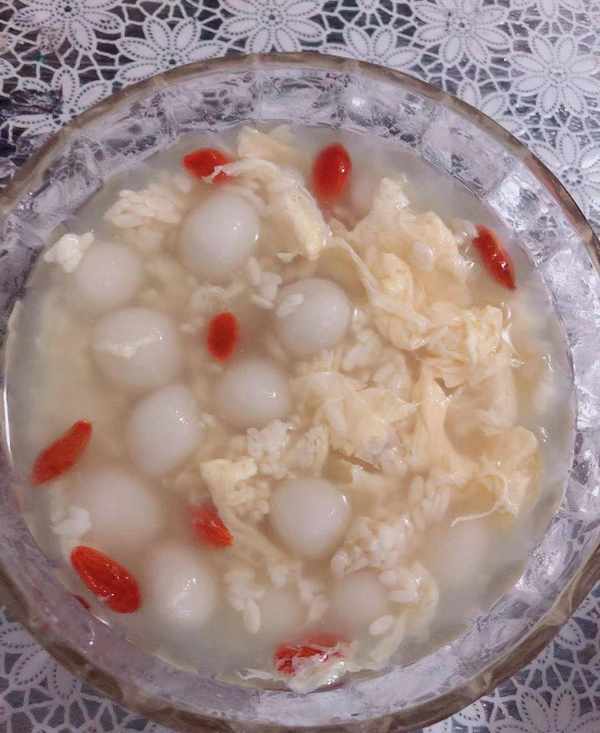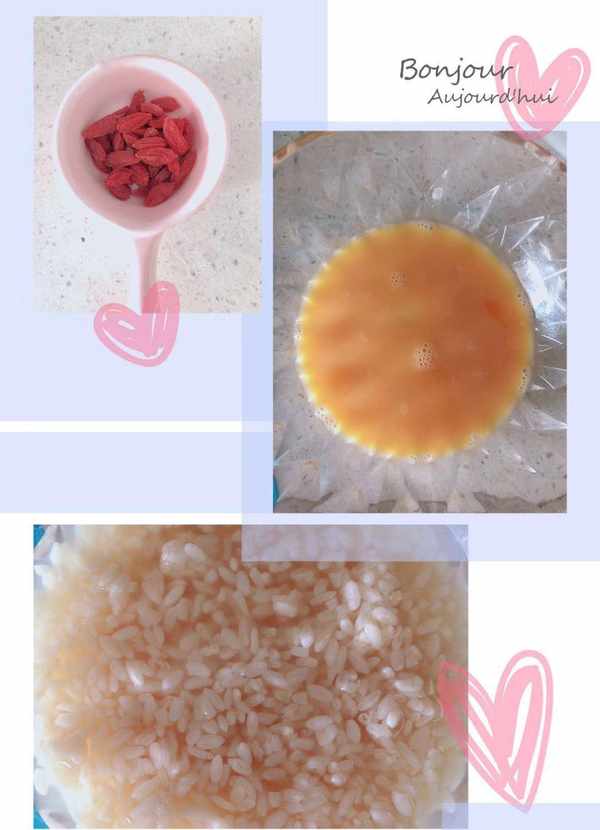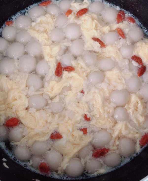 準備原料:糯米粉100克,熱水適量,雞蛋1個,枸杞5克,冰糖或紅糖適量,酒釀1碗(這裡用的是買的酒釀,自己也可以做酒釀,但是有點費時間,所以用外面買的更方便快捷)