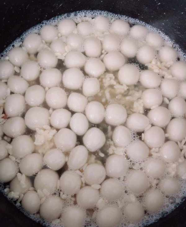 5、將搓好的小丸子開水下鍋,煮至浮起