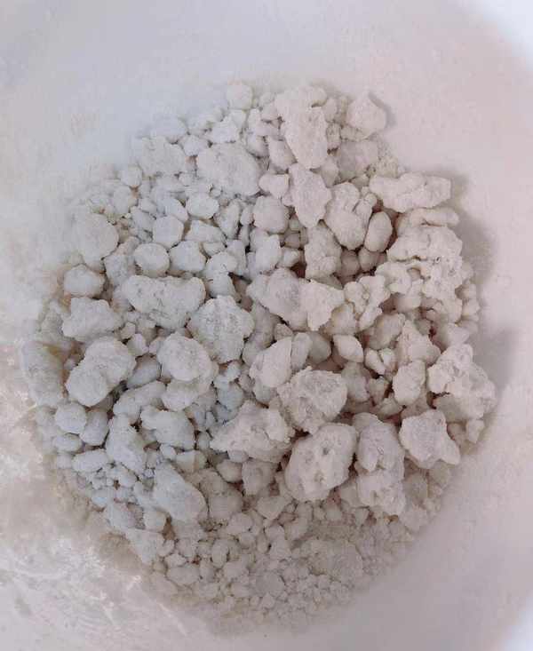 1、加適量熱水到糯米粉中,少量多次添加,邊加水邊用筷子攪拌,攪拌成面絮狀即可