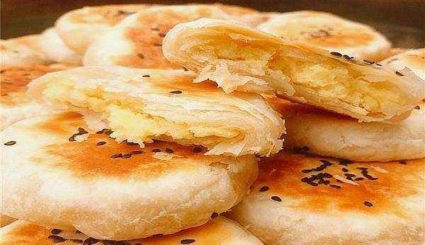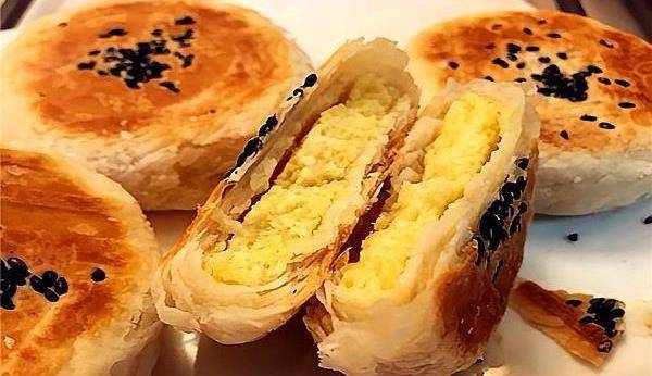 煎好的綠豆餅的皮面金黃誘人,柔軟可口,香甜不油膩,傢人都說比外面好吃。