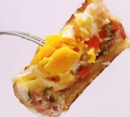 橫切面哈,材料很豐富,營養也全面,關鍵是味道,培根少許的煙熏味,搭配雞蛋芝士的香味,還有蔬菜的清香,口感一流!