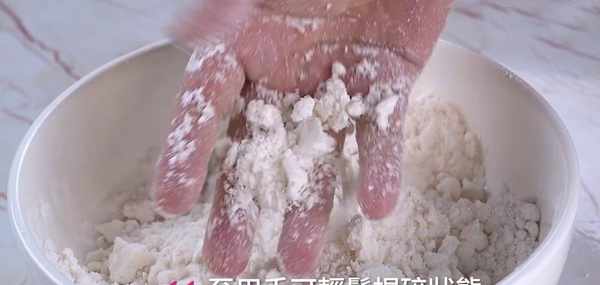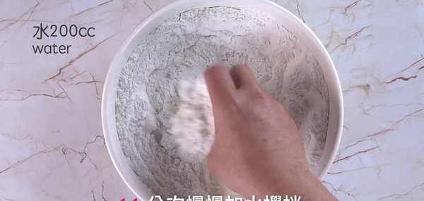 步驟2:再分次慢慢加水攪拌,再用手搓成小顆粒。