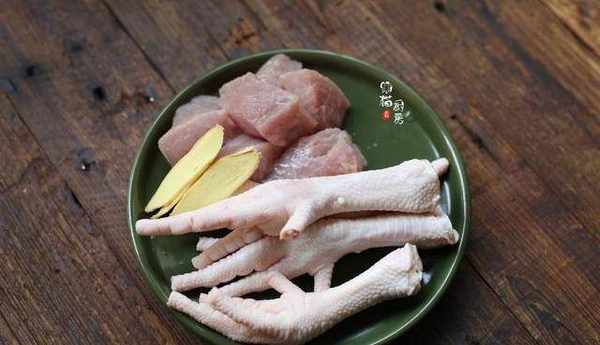 1.這湯我用的是一塊瘦肉和幾個新鮮的雞腳,雞腳含有豐富的蛋白質和膠質,同時也能強健筋骨,油脂不多,準給3-4個左右,瘦肉能提高免疫力,把瘦肉切成塊,雞腳的指尖要剪掉。