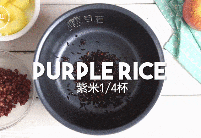 將紫米、紅豆洗凈,泡水放置隔夜。