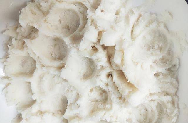 1、鐵棍山藥洗凈去皮,切成段,放在鍋中蒸熟,蒸熟瞭以後,取出來,壓成泥狀。