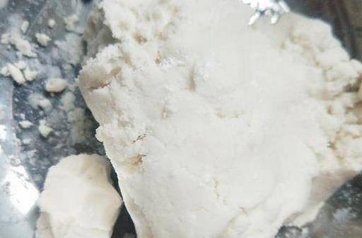 2、往山藥泥中倒入一小碗糯米粉,混合均勻以後,揉搓成面團。