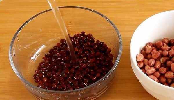 1、取兩個小碗,分別加上花生和紅豆,往碗裡面加上一些清水,把它洗幹凈,之後把水倒掉,再加上溫水泡上五個小時左右。