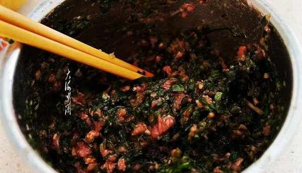 鴕鳥肉絞成肉餡,加入鹽、蔥薑末、料酒、五香粉、胡椒粉、少許白糖、生抽沿一個方向攪拌均勻,慢慢加入老湯繼續用筷子沿一個方向攪拌上勁,加入適量的油攪拌上勁鎖住水分,蒲公英洗凈切碎,撒些鹽醃制10分鐘,攥掉水分,拌入肉餡中。