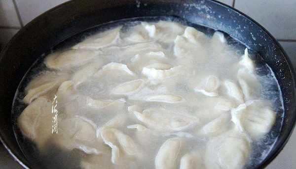 鍋中水開下入餃子,煮開澆點冷水,再煮開再次澆點冷水,第三次煮開關火,撈出,餃子煮得恰到好處。