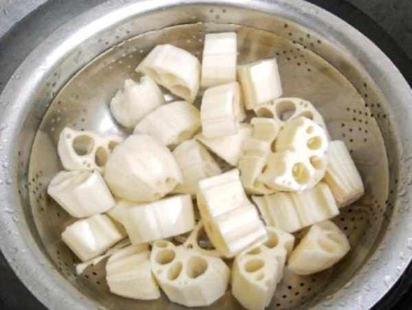 第五步:蓮藕去皮洗凈,註意瞭哈,蓮藕一般中間都會有泥巴,要註意清洗幹凈,切成坨狀,不要切薄片,坨狀的蓮藕燉出來才有口感