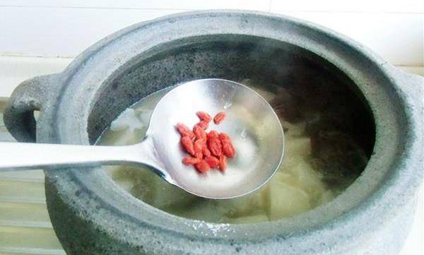 從新起鍋放入鴨肉,加薑、料酒,大火燒開後轉小火煲1個小時,再把切好的白蘿卜放進去,熬煮20分鐘左右放入食鹽,胡椒粉調味,攪拌均勻,要是傢有枸杞就在幾粒的枸杞,熬煮三兩分鐘就可以關火瞭。