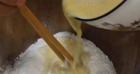2、在大碗裡放入300g的白面,把蛋漿倒進碗裡,一面往裡翻,把面打到漿糊,然後加入15g的油,把它搓成一個松緊的面團。用塑料薄膜包裹,使其膨脹到2次。將30g的生粉和30g的油加入到一個大盆裡,將其打至面團。將蒸好的紅豆略一攪和,再倒進一個大盆裡,再加上少許的砂糖,用搟面棍將其碾碎。塗些油脂以防粘在手掌上,再拿一小片紅豆醬,把它搓圓,做成一個稍小於乒乓球的圓團,放在盤子裡待用。