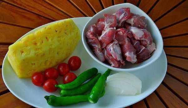 所謂軟骨,是指豬的胸前胛心肉裡面的片狀三角軟骨,長約10公分,寬約5公分。每隻豬隻能取兩片帶肉的軟骨,經常是被餐館搜購,比較難買到,如果年節或請客要用最好提前吩咐。像這盤料裡所用軟骨(350克)就是我們前幾天便商請肉攤預留的。至於鳳梨,由於全傢都愛酸,所以鐘情酸酸的土鳳梨(約300克,可以不必再加醋)。其他,讓他繽紛喜氣的配料還有小番茄、小青龍、洋蔥(剛好冰箱有貨)。調味料則求清爽,隻用糖、鹽、米酒、太白粉,酥炸粉(約200克)。
