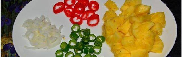 這時間正好把鳳梨、青椒、番茄、洋蔥都切好。(鳳梨和軟骨分庭抗禮,所以大些,其餘不宜搶戲,因此小些。)