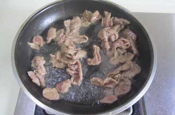 4.煸炒鴨脯肉片變色後,盛出備用;