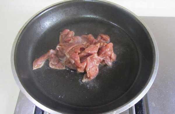 3.熱鍋涼油,放入醃制好的鴨脯肉進去;