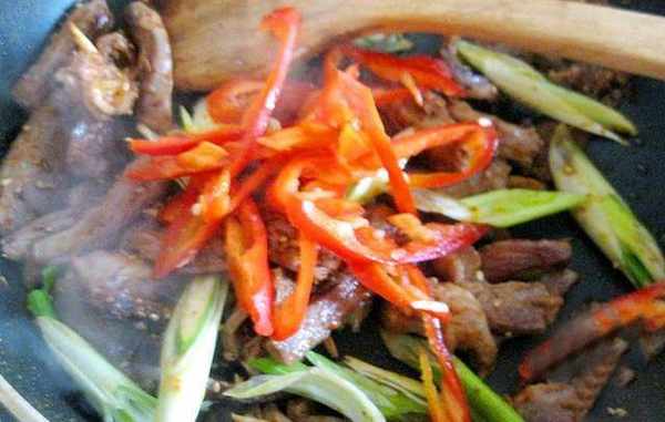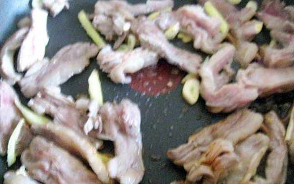 也我們要把羊肉先清洗一下,然後在水中浸泡一個小時,因為浸泡羊肉可以更好的去除羊肉中的血水,這樣羊肉的膻味就會變得很小,但是我們在浸泡的時候是一定要換水的,大概要換兩次水或者是三次水。羊肉泡好之後,我們要把羊肉瀝幹凈水份,然後把羊肉切成絲狀之後放在碗中,再把羊肉醃制一下,我們醃制羊肉需要放入的東西,有米酒好油還有淀粉,攪拌均勻之後醃十分鐘就可以瞭,這樣醃制過後的羊肉吃起來特別的嫩,還沒有膻味兒。然後我們把大蔥和辣椒也清洗幹凈,切成絲。把大蒜切成片狀,接著就可以開始炒羊肉瞭。
