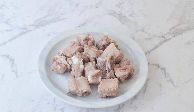 制作過程:1、排骨斬成小塊,冷水下鍋,加入薑片和料酒,焯水後沖洗幹凈備用