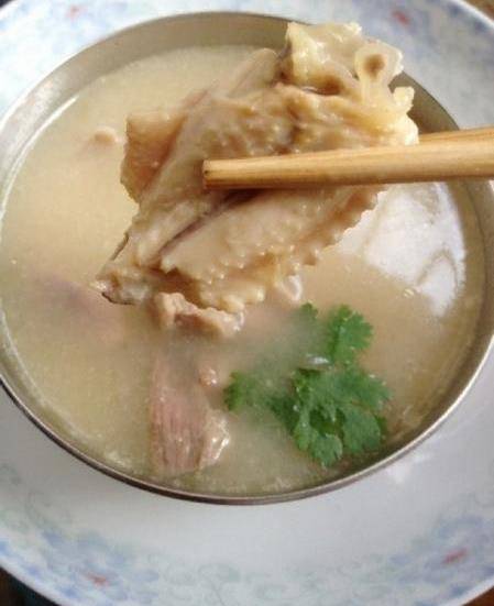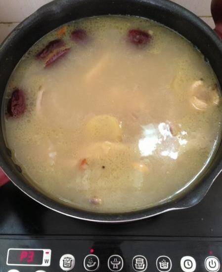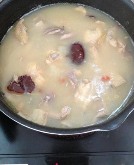 兩個小時後,湯就變白瞭哦,這個時候加鹽,調好味道,再煮10分鐘就可以吃瞭哦!不用加雞精味精什麼的,湯本身就很鮮哦!