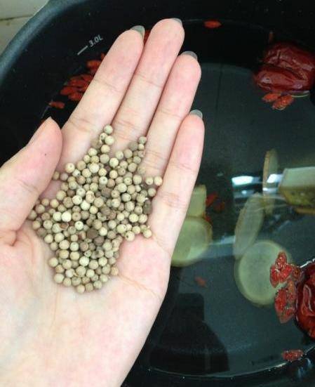 法寶來瞭哦,胡椒粒一定要有哦!我隻放瞭這麼多,湯沒有辣味,寶寶愛喝,要是喜歡稍微辣一點的,就放雙倍哦!我要是不用管女兒,就放雙倍瞭!覺得辣辣的更好喝
