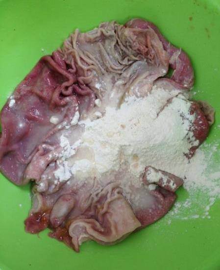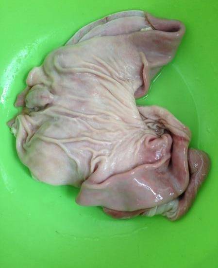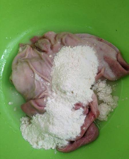 豬肚剪開,加面粉,鹽,白醋使勁搓洗,就跟洗衣服一樣!