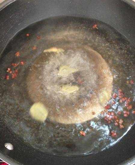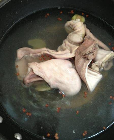 再洗凈,然後燒一鍋水,加入花椒,薑片,料酒燒開!