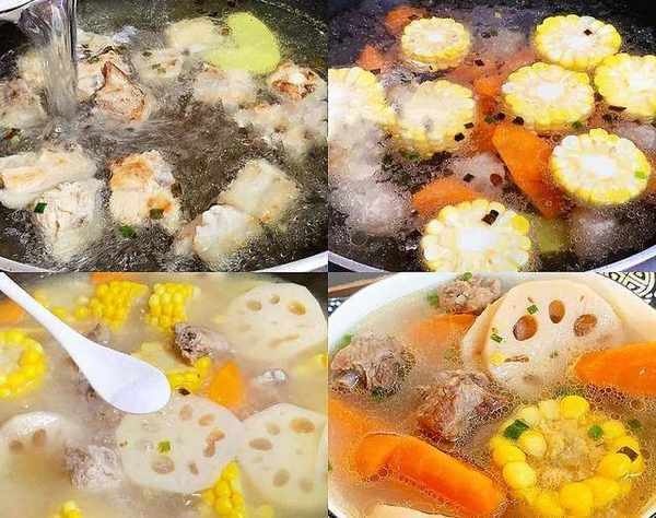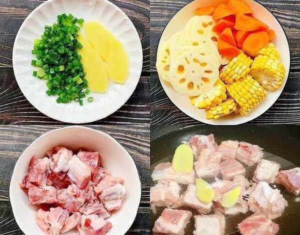 食材:排骨,蓮藕,玉米,胡蘿卜,薑,蔥,料酒。