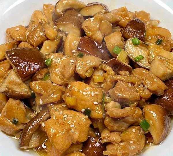 3.另起鍋燒油,油熱下蔥薑蒜末爆香,然後倒入香菇翻炒,炒至香菇變軟,再倒入雞腿肉翻炒,加入適量白糖和蠔油提鮮,再翻炒一分鐘左右,撒入白芝麻和蔥花即可出鍋,養胃健康,老少皆宜。