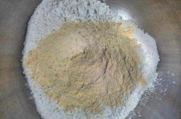 2,粉類的全部都放進容器裡邊混合一下。