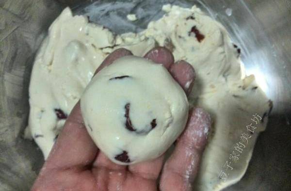 5,和好的面需要靜止10分鐘,充分的吸收水分。取一塊面胚團幾下就成為小圓面胚瞭。
