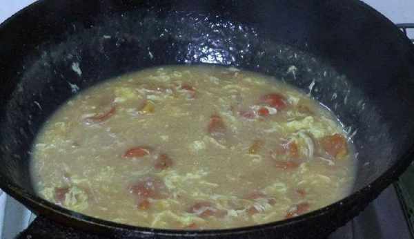 熱鍋涼油,加入蔥花,火候調成中火,慢慢炒出蔥花香味後加入西紅柿。改成大火翻炒,之後將西紅柿炒爛,加入適量清水,大火燒開後將備好的面絮絮一步步加入鍋中,待沸騰定型後撒上備好的雞蛋液,撇成蛋花。最後加入適量香蔥,出鍋即可食用。