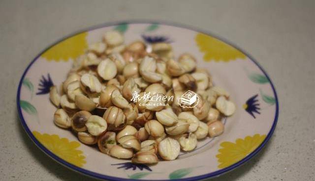 3把蓮子剝殼去掉蓮子心,有蓮子心會清熱但會有苦澀味,我喜歡清甜滋潤的,我把所有蓮子都去瞭心再用。