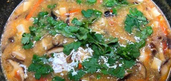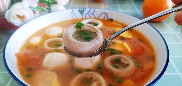 然後把口蘑和其他配料下鍋,中火煮上一分鐘,一分鐘後,再淋上個雞蛋,淋點香油,就可以倒出來喝瞭,口感鮮美,酸辣開胃營養高,你不學嗎?
