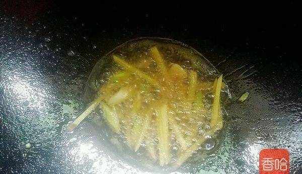 6.鍋中放入適量油燒熱,放入薑絲,蒜苗爆香