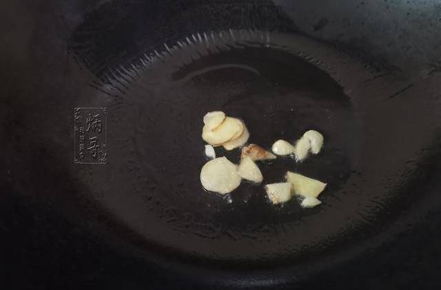 2、把這次煮湯所需要的食材都準備好後,我們就可以開始起鍋熱油瞭。取出傢中常用的炒鍋,往鍋裡加入適量的食用油,隨後開火將鍋內的油溫持續加熱至六成左右的時候就把我們切好的大蒜和生薑下鍋煸炒爆香。
