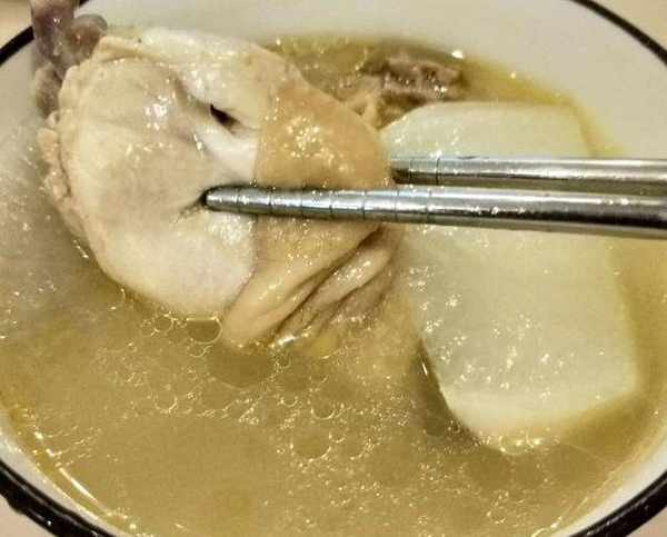 蘿卜在民間素有“小人參”的美稱,富含大量的維生素c,胡蘿卜素和粗纖維,解毒生津,消食潤肺,十分適合養生進補,而加上雞肉的滋補,從而形成的這一碗白蘿卜燉雞湯,補血補氣,清甜可口。