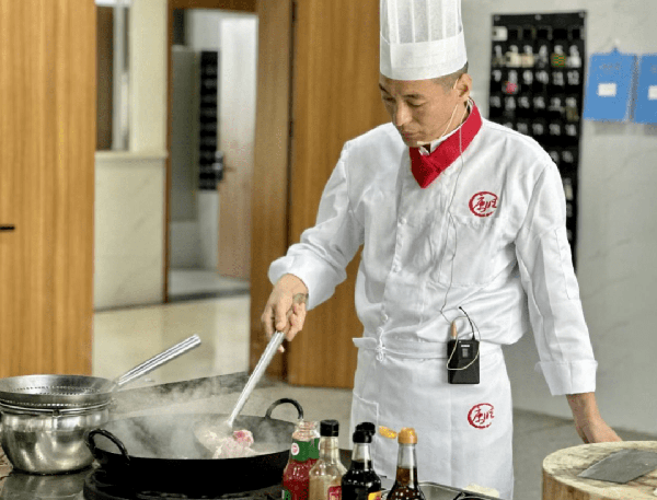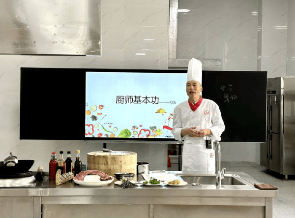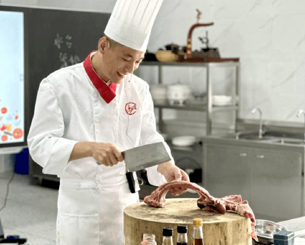 課上,他時不時指出學生操作中刀功的不規范之處並加以糾正。胡大師為同學們總結瞭茶香排骨制作的過程、細節及關鍵點,同時,在課堂上也給同學們分享瞭他作為一名廚師在職業之路上的經驗。