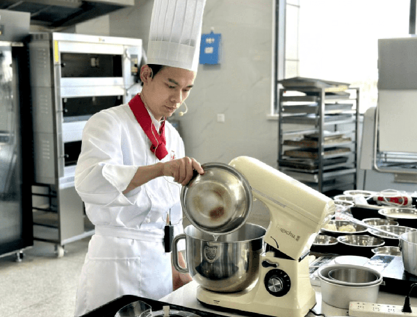 他表示,希望同學們夯實基本功,不斷加強西餐文化精髓的學習,並能將中華傳統文化融入,不斷去創新改良,讓西式面點迸發出新的生命力。