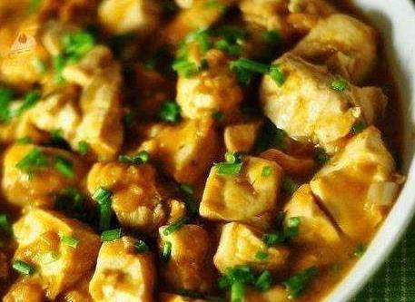 雞胸肉洗凈後,把刀橫過來,把雞肉拍松,切成丁,先放一勺料酒抓勻,再放一勺蠔油抓勻,最後放一勺色拉油拌勻醃制備用。豆腐切小塊,荷蘭豆洗凈撕去筋切成兩段,大蒜切片鍋燒熱,倒油,待油溫上來,放入豆腐丁用中火煎至兩面金黃後盛出鍋中餘油低溫滑炒醃制好的雞丁,色變白後立即盛出用鍋中餘油煸香蒜片和泡椒鍋中餘油低溫滑炒醃制好的雞丁,色變白後立即盛出用鍋中餘油煸香蒜片和泡椒倒入雞丁和豆腐,加一勺半老抽、和半小碗清水煮開後,蓋上蓋子中火咕嘟兩分鐘開蓋倒入荷蘭豆,煮一會兒,加鹽和雞丁調好味出鍋前倒入稍許淀粉水,轉大火推勻立即關火出鍋